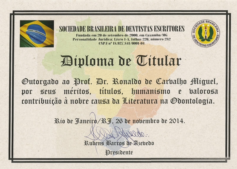 Cerimônia de entrega de DIPLOMA DE MEMBRO TITULAR DA SOCIEDADE BRASILEIRA DE DENTISTAS ESCRITORES